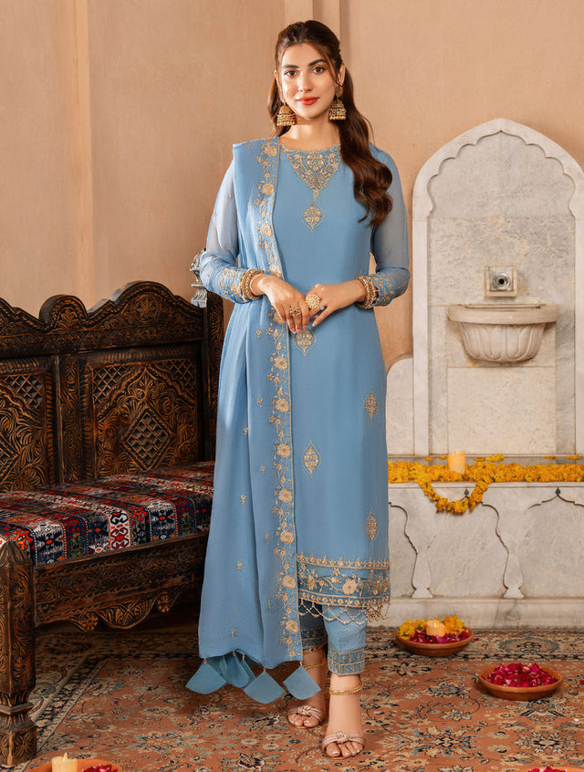 Embroidered Chiffon 3 Piece Suit
