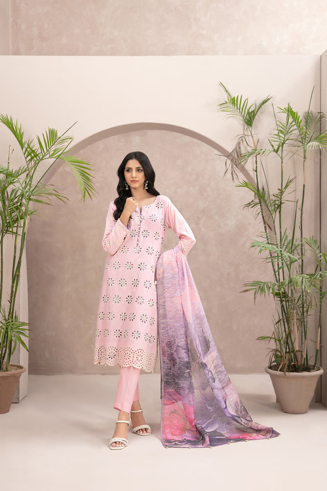 – Stitched Fancy Schiffli Embroidered Shirt with Digital Printed Swiss Inner Fabric