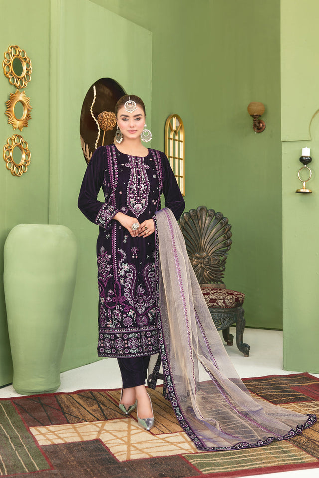 3 Piece Stitched Collection By Tawakkal Fabrics, Attractive & Elegant Velvet Collection comes with: