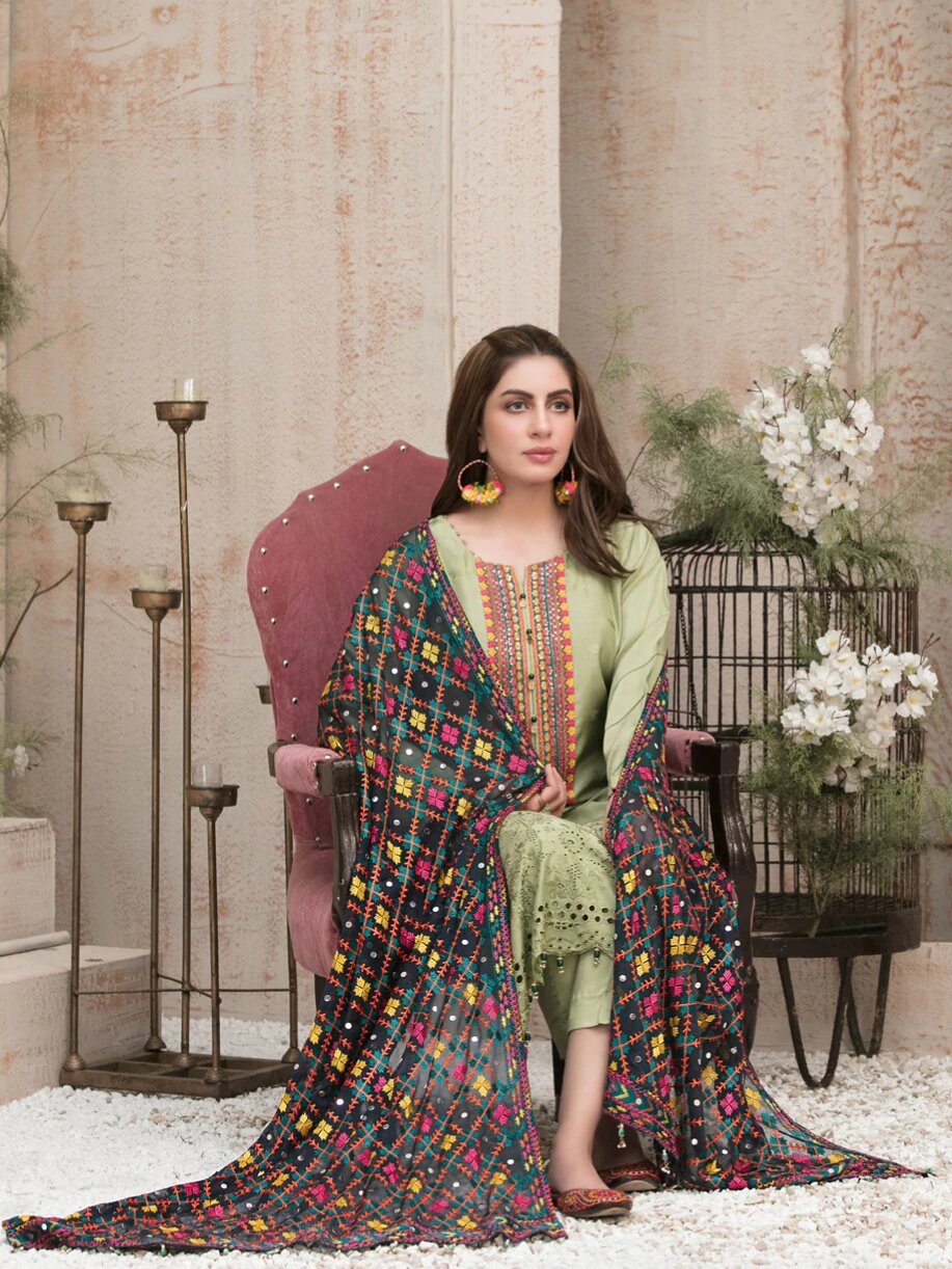 Patchwork Embroidery with Exclusive Fancy Embroidered Polly Dupattas