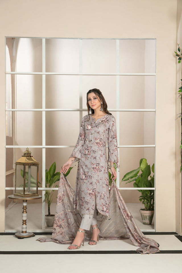 3 Piece Stitched Collection By Tawakkal Fabrics, Attractive & Elegant Lawn Collection comes with: