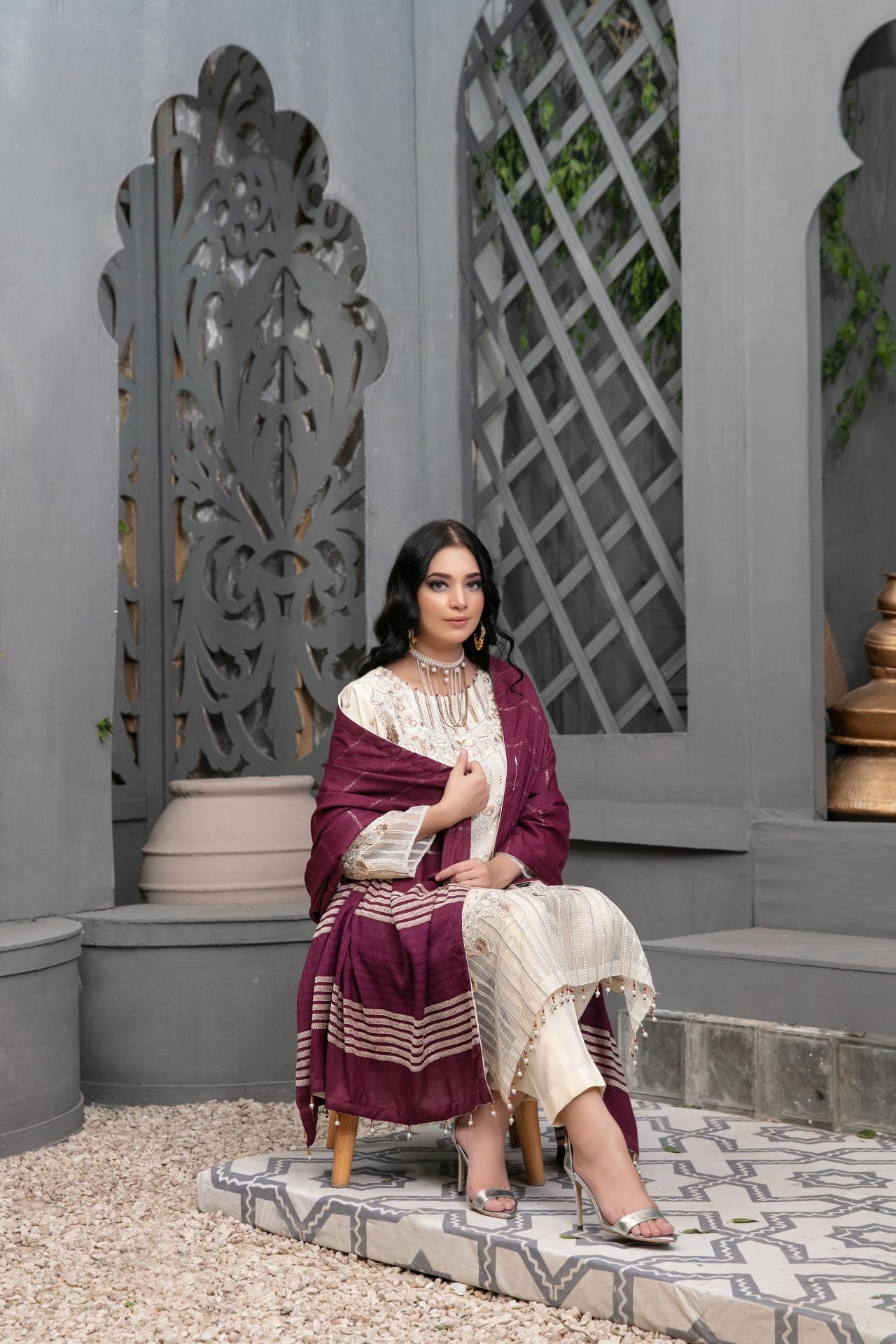 – Exclusive Zari Leather Peach Shawl Dupatta -