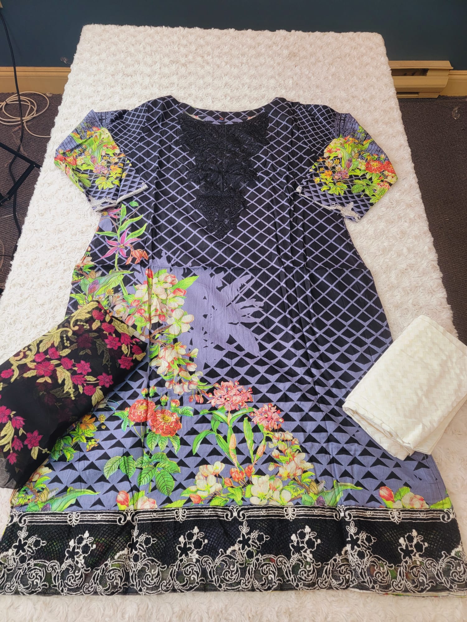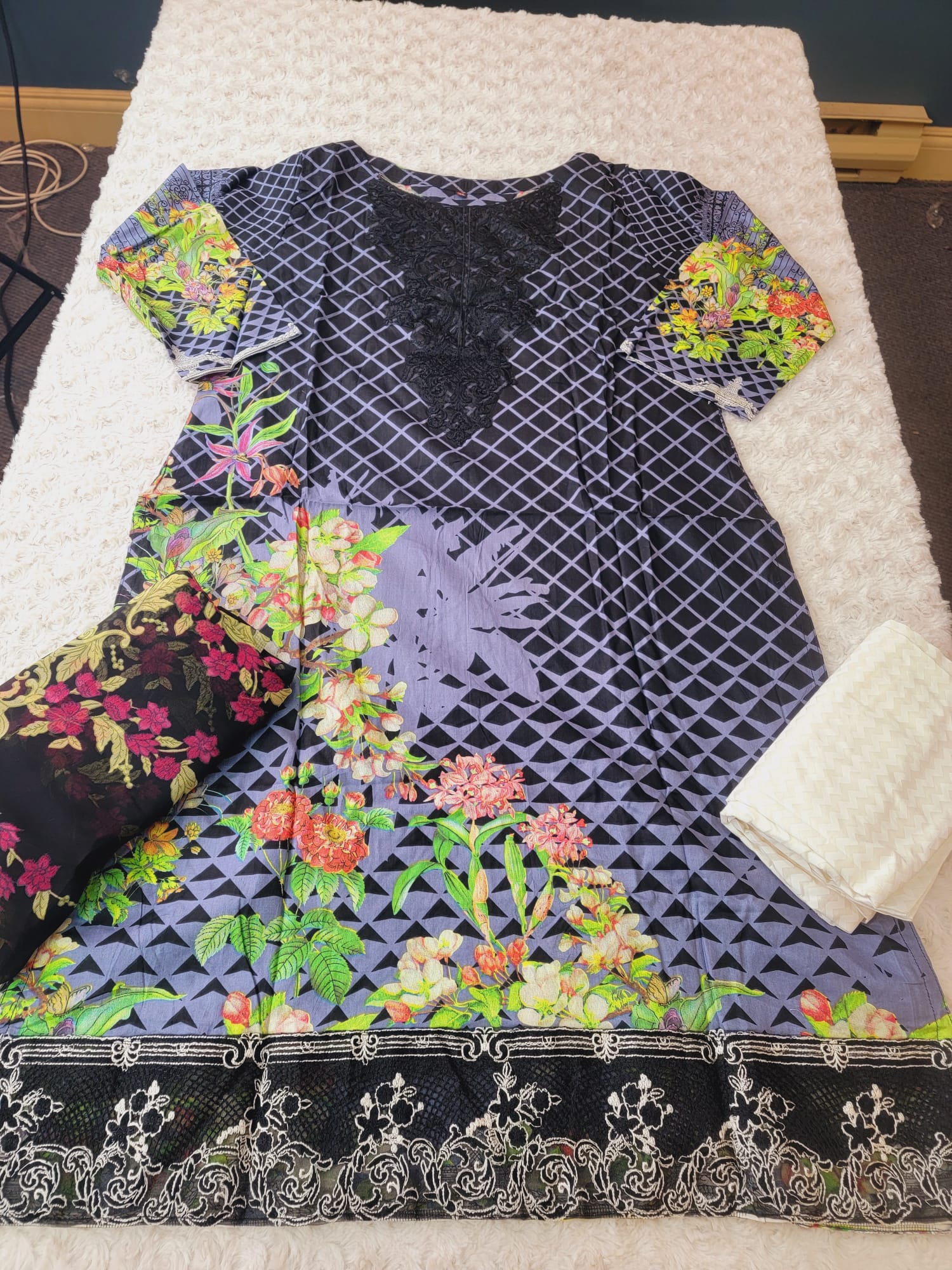 Indian Cotton Embroidered Suit Ready To Ship - 44 is backordered and will ship as soon as it is back in stock.