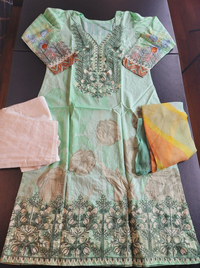 Indian Cotton Stitched Embroidery Suit Ready To Ship