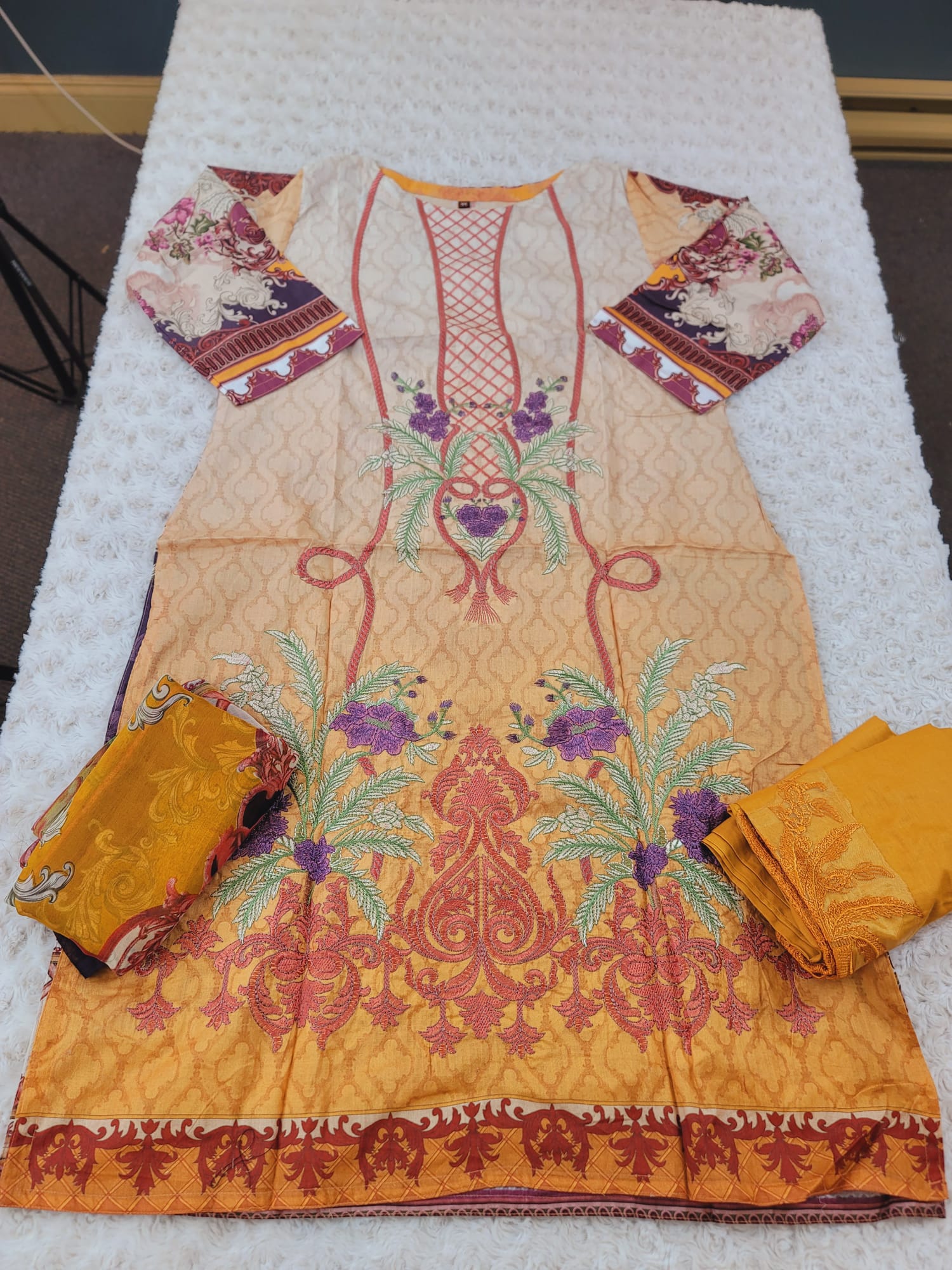 Indian Cotton Stitched Embroidery Suit Ready To Ship