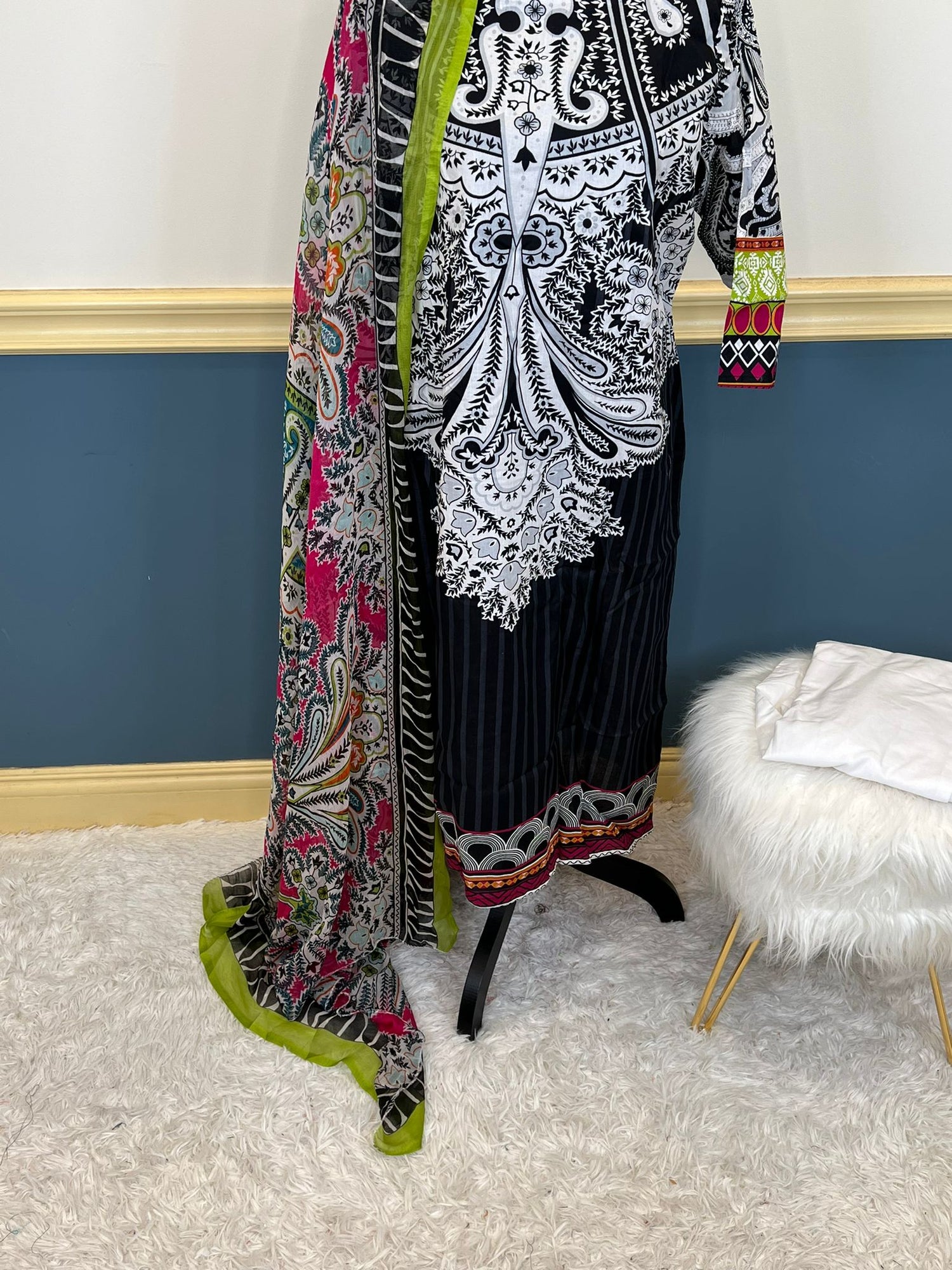 Indian Cotton Stitched Embroidery Suit Ready To Ship - 46 is backordered and will ship as soon as it is back in stock.