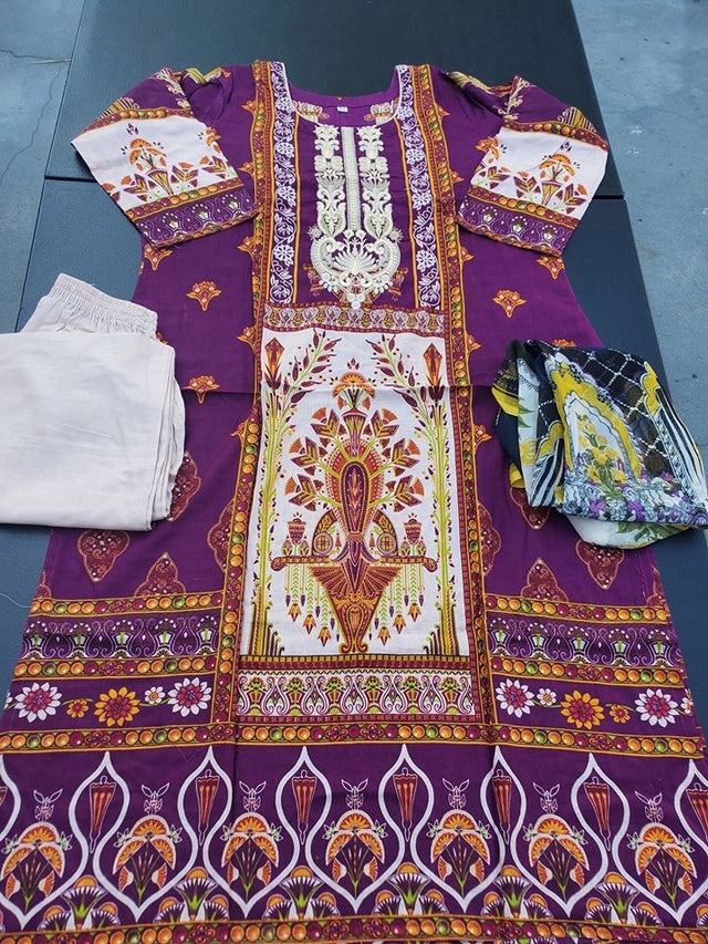 Indian Cotton Stitched Embroidered Suit Ready To Ship