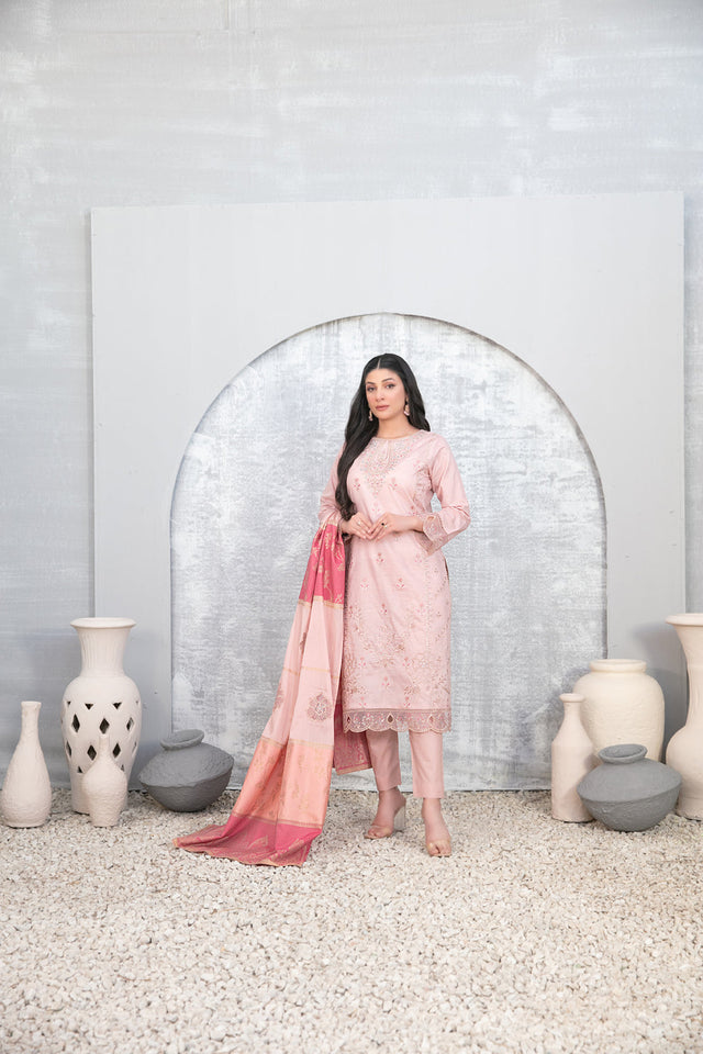 3 Piece stitched Collection By Tawakkal Fabrics, Attractive & Elegant Embroidered Embroidered Zari Line Lawn Collection comes with: