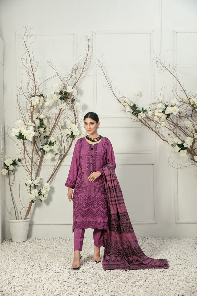 Description: 3 Piece Stitched Embroidered Leather Peach Collection By Tawakkal Fabrics, Attractive & Adorable: – Stitched Fancy Embroidered 2-tone Leather Peach shirt – Exclusive Leather Peach Shawl Dupatta – Stitched 2-tone Leather Peach Shalwar