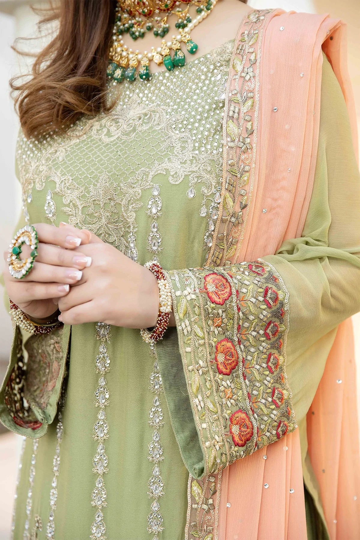 Embroidered Chiffon for front with stone embellishment