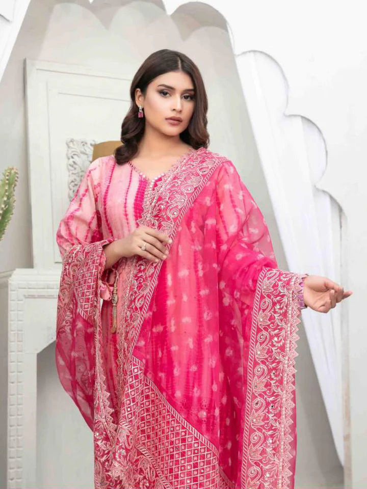 Tawakkal "Manal" Lawn Schiffli Bright Pink Tie & Dye (D-6608)