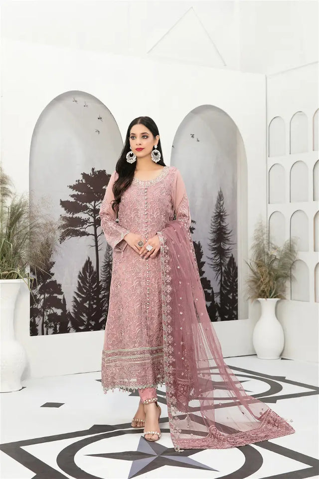 Description: 3 Piece Stitched Fancy Collection By Tawakkal Fabrics, Attractive & Adorable: – Stitched Heavy Embroidered Fancy Shirt designs – Fancy Heavy Embroidered Dupatta – Stitched Viscose Jacquard Shalwarr
