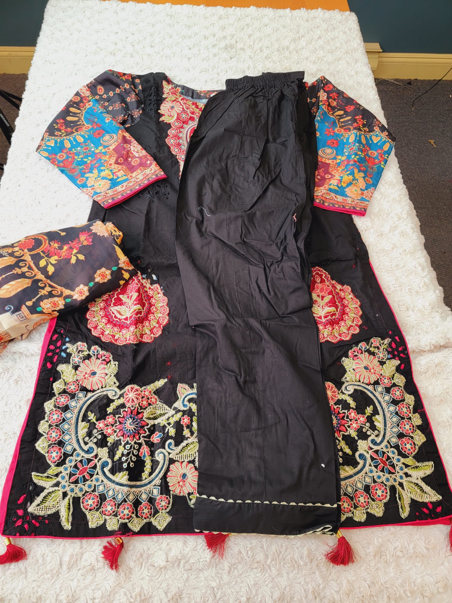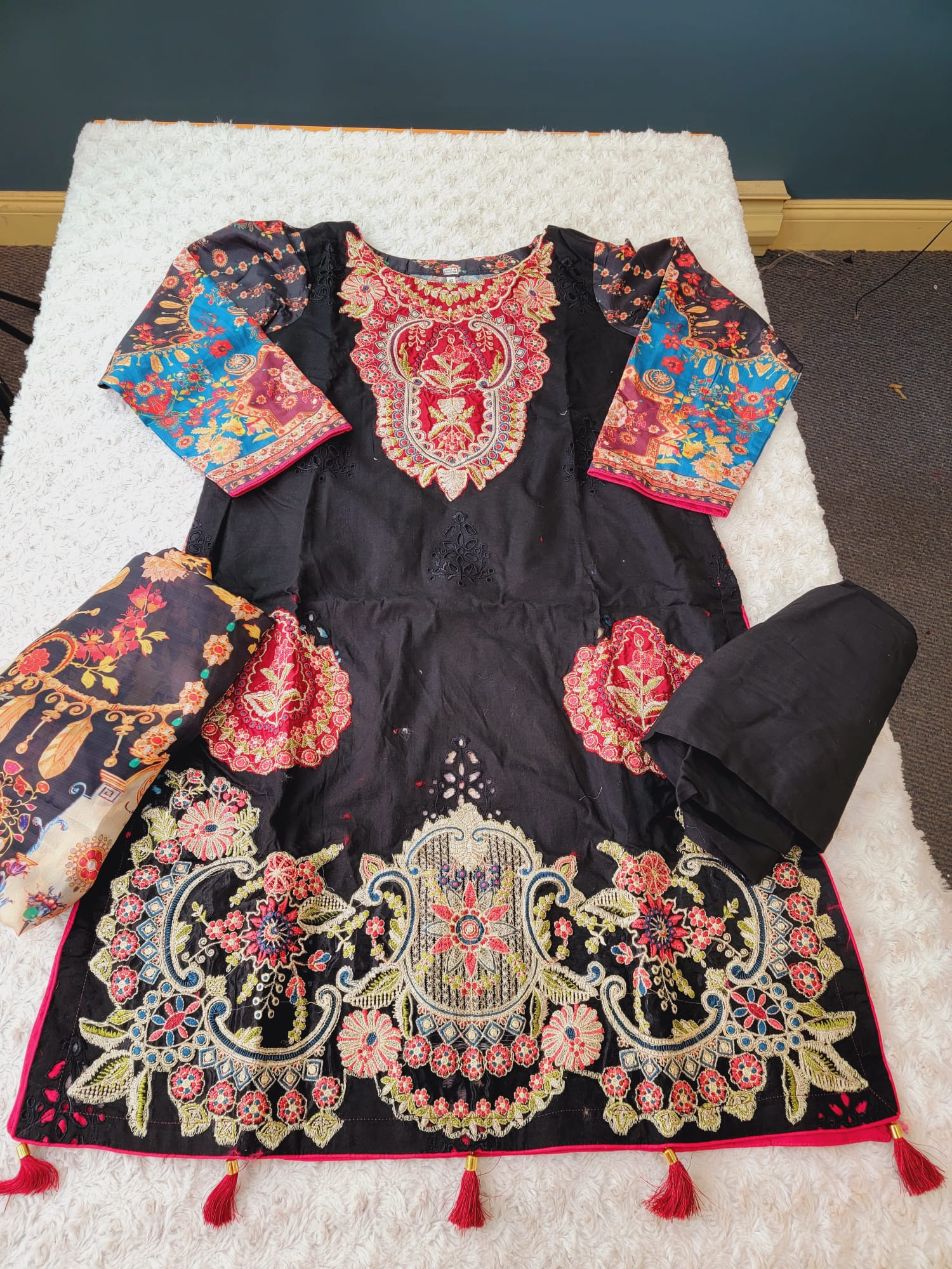 Pakistani lawn stitched Embroidered Suit Ready To Ship