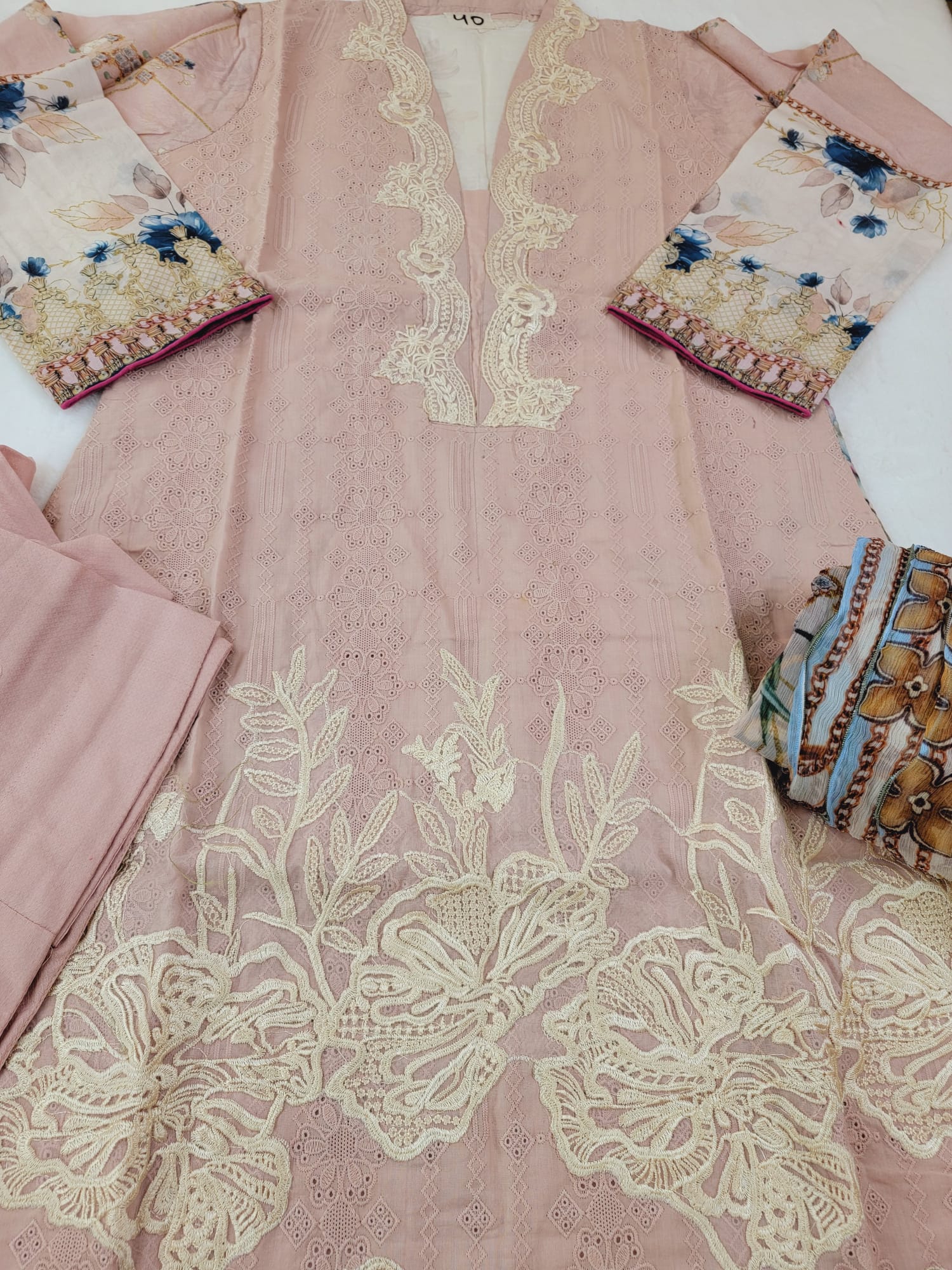 Pakistani lawn stitched Embroidered Suit Ready To Ship