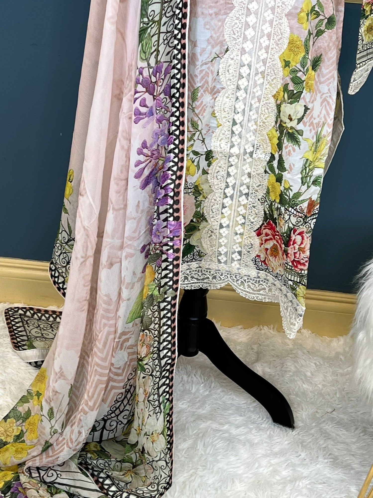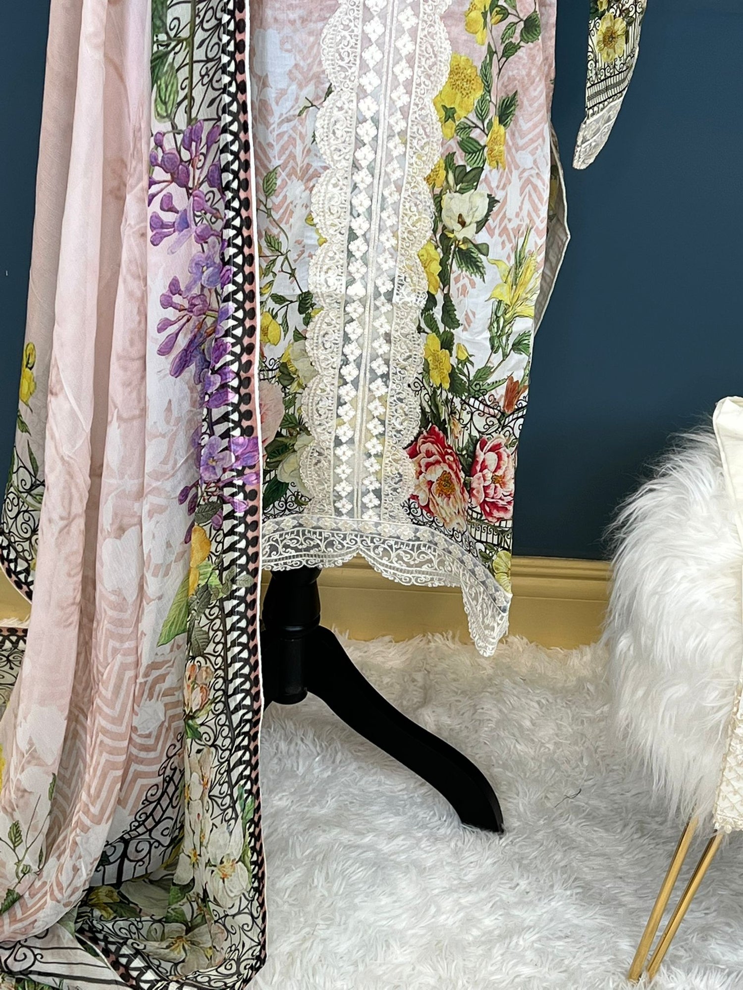 Pakistani lawn stitched Embroidered Suit Ready To Ship