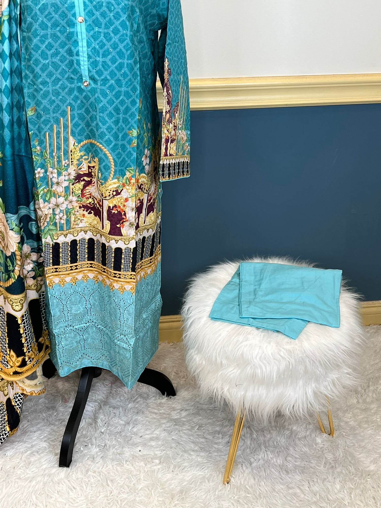 Pakistani Stitched Embroidered lawn Salwar kameez ready to ship - 42 is backordered and will ship as soon as it is back in stock.