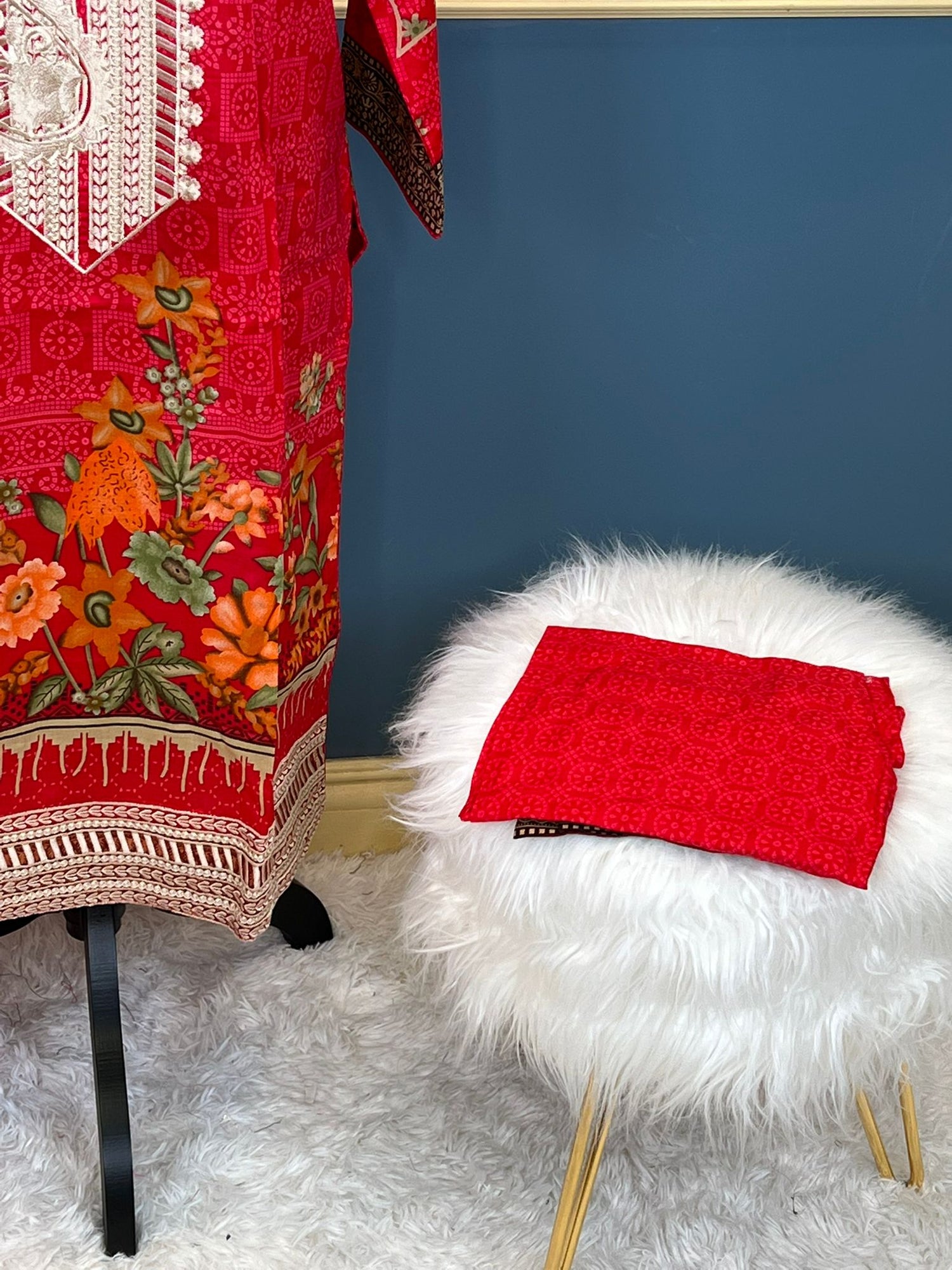 Pakistani Stitched Embroidered lawn Salwar kameez ready to ship - 44 is backordered and will ship as soon as it is back in stock.