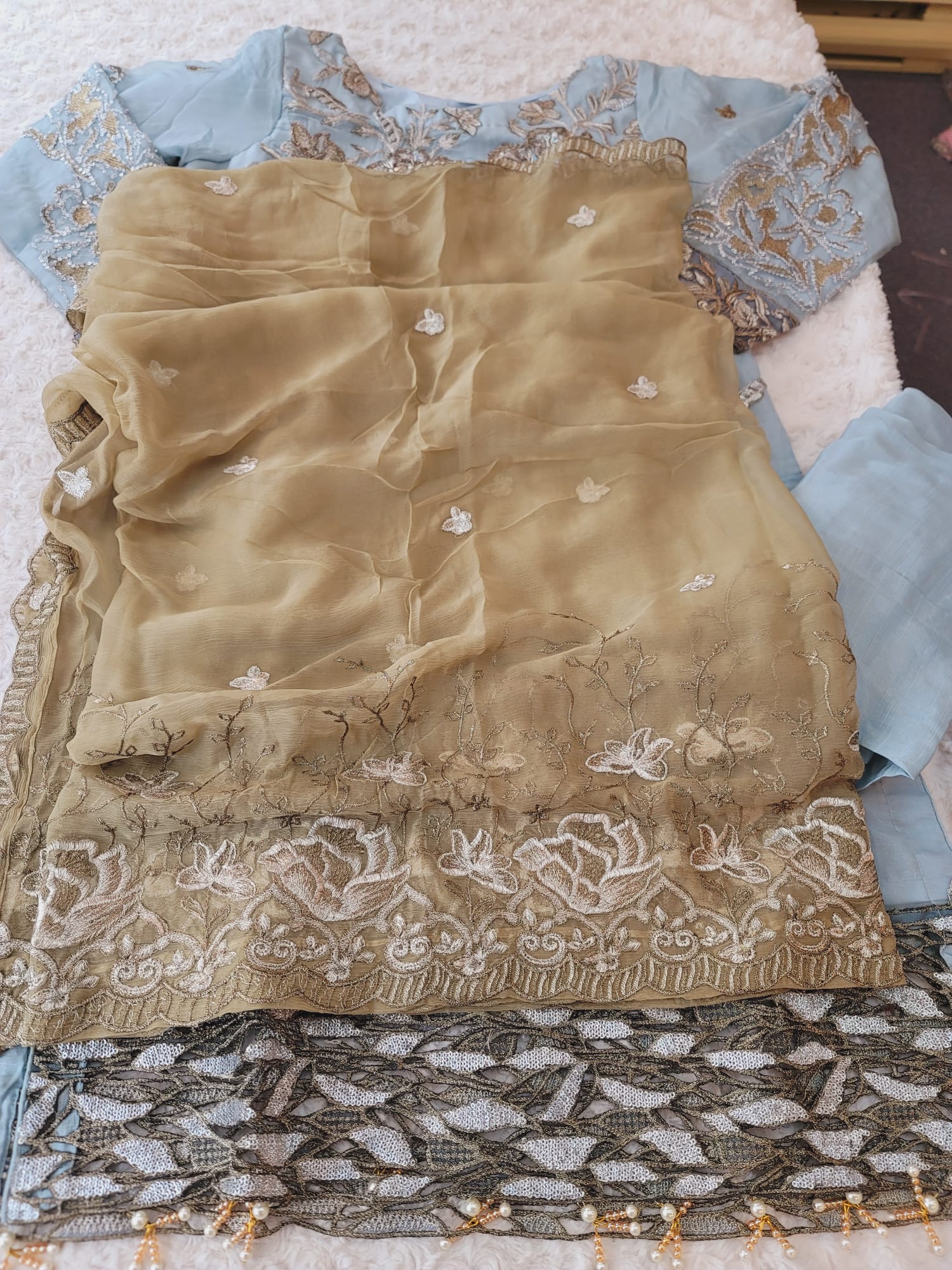 Pakistani Stitched Embroidery Party Wear Dresses Ready To Ship - 42 is backordered and will ship as soon as it is back in stock.