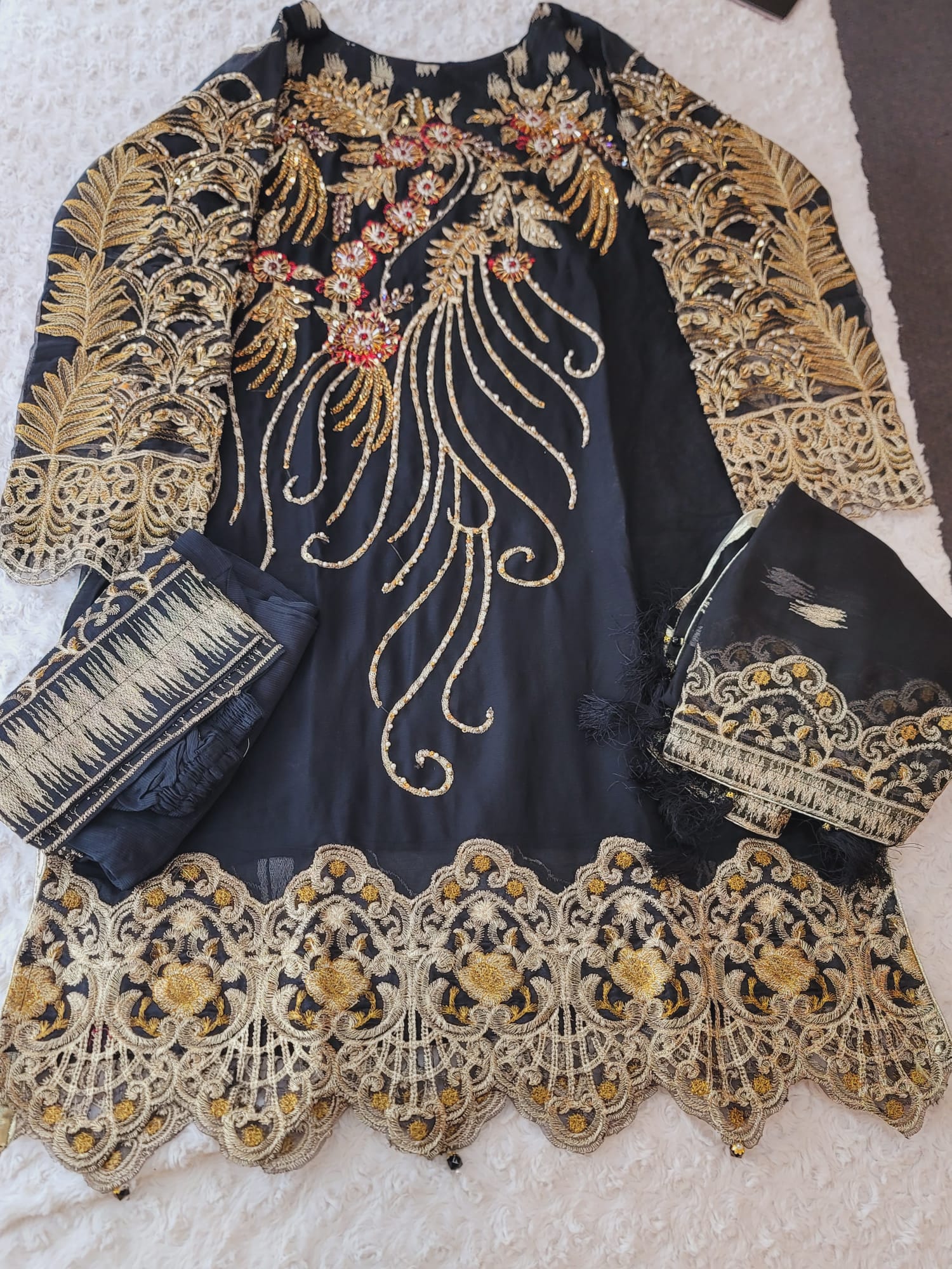 Pakistani Stitched Embroidery Party Wear Dresses Ready To Ship - 42 is backordered and will ship as soon as it is back in stock.