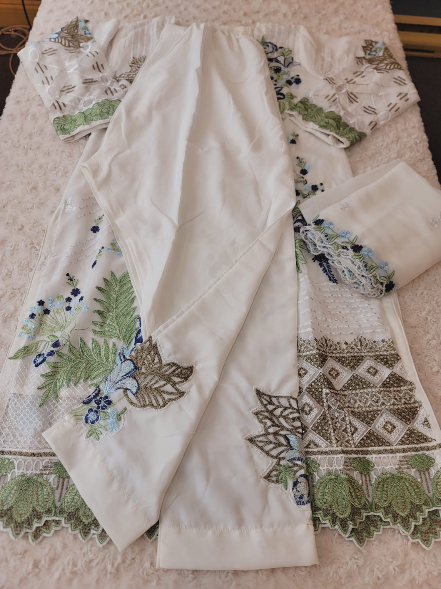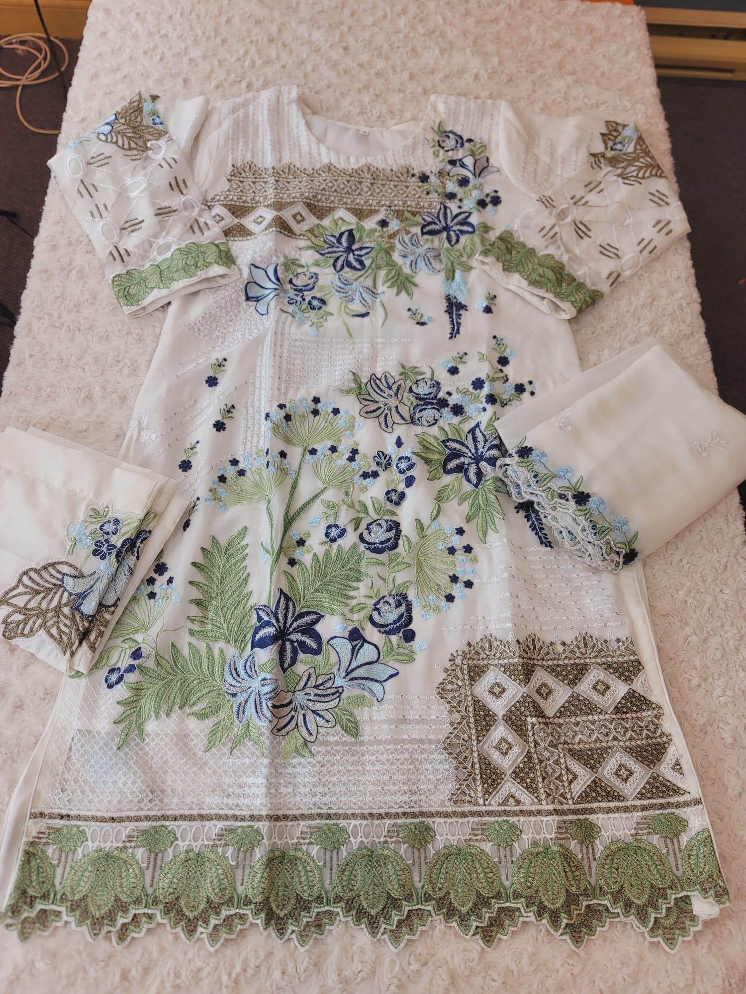 Pakistani Stitched Embroidery Party Wear Dresses Ready To Ship - 38 is backordered and will ship as soon as it is back in stock.
