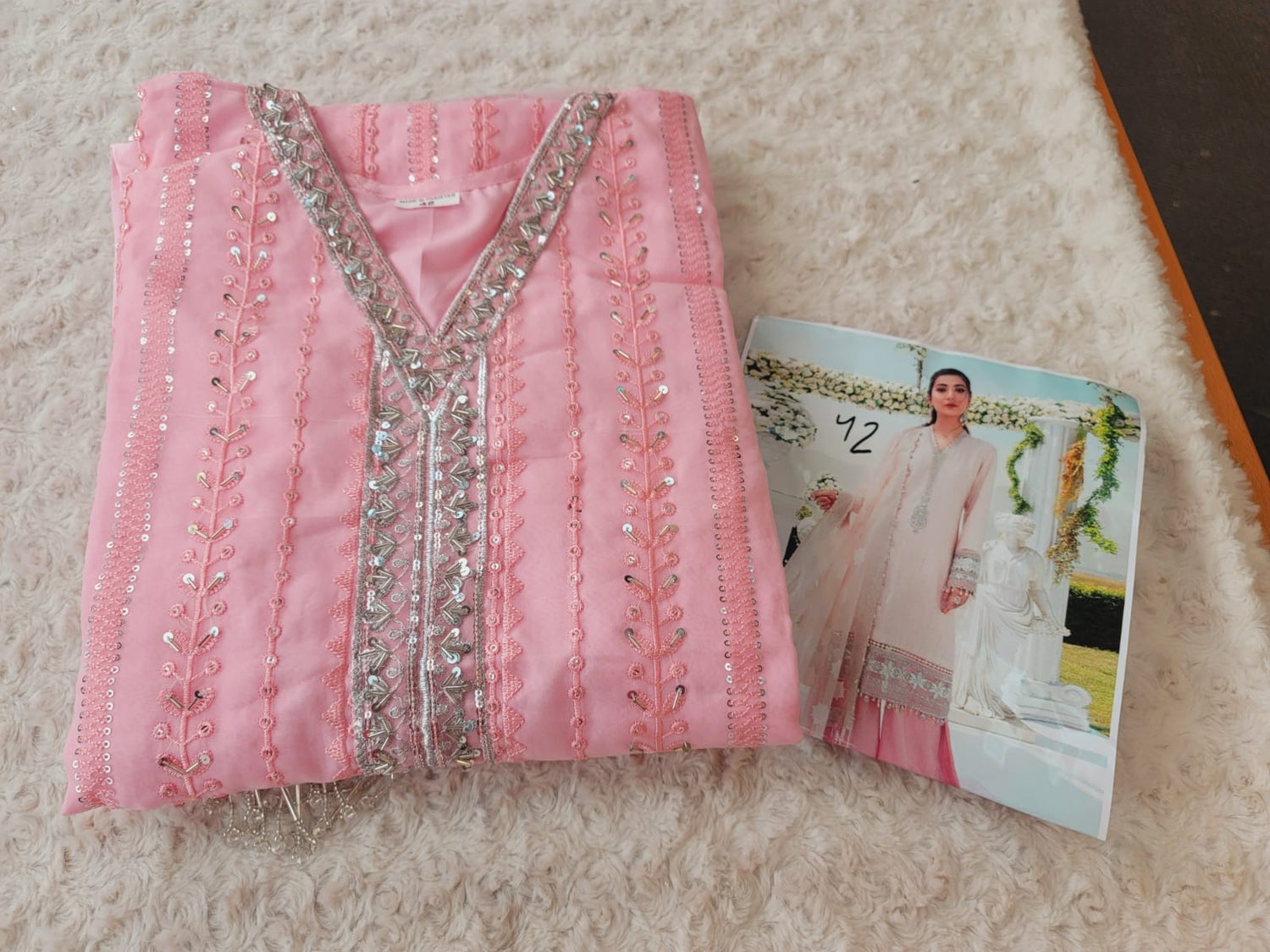 Pakistani Stitched Embroidery Party Wear Dresses Ready To Ship - 36 is backordered and will ship as soon as it is back in stock.