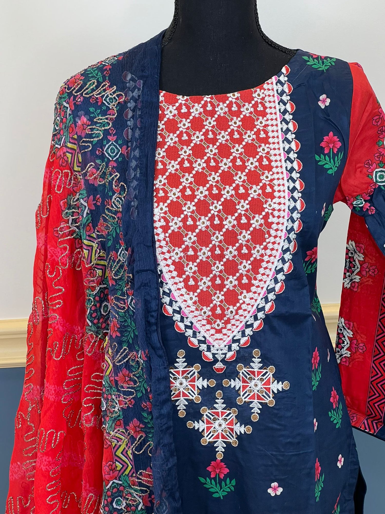 Pakistani Stitched lawn Embroidered Salwar kameez ready to ship - 38 is backordered and will ship as soon as it is back in stock.