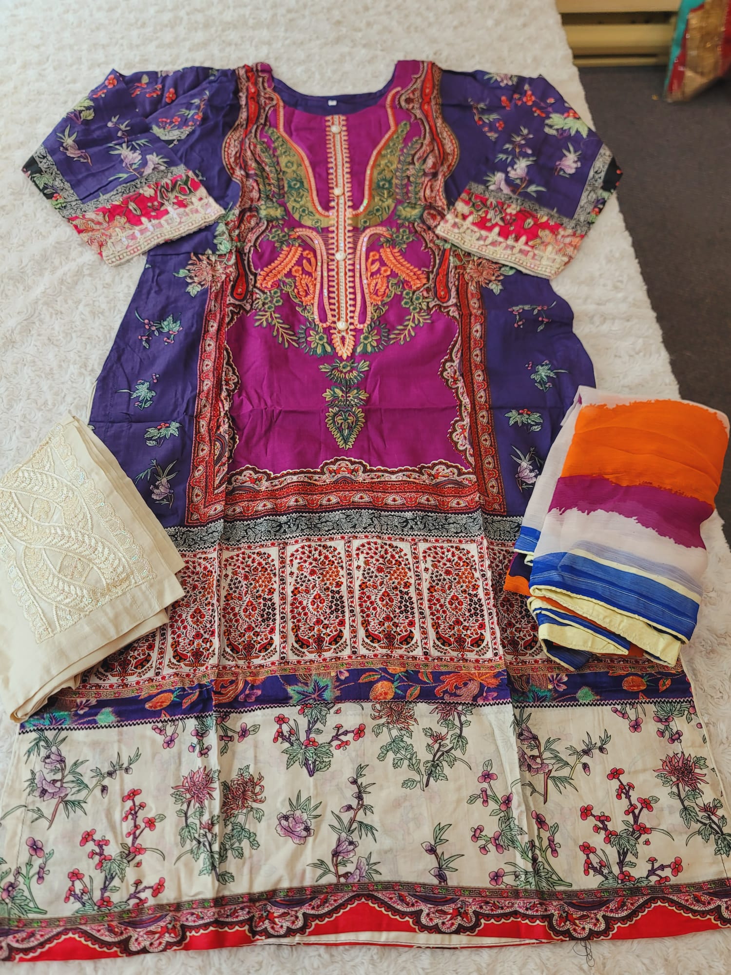 Pakistani Stitched lawn Embroidered Salwar kameez ready to ship - 36 is backordered and will ship as soon as it is back in stock.