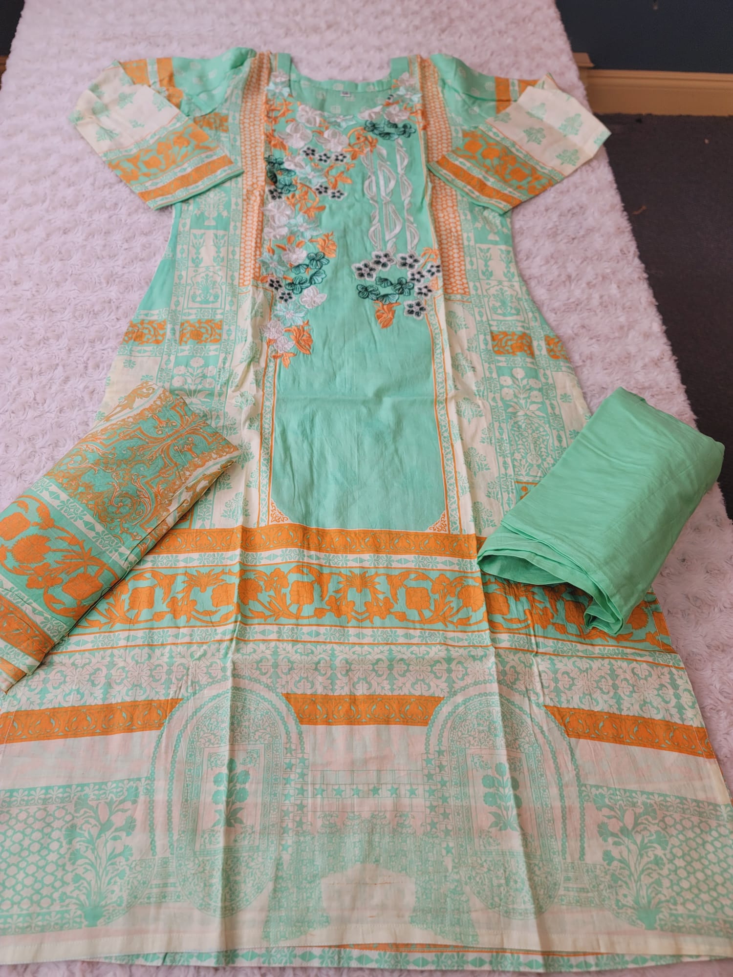 Pakistani Stitched lawn Embroidered Salwar kameez ready to ship - 38 is backordered and will ship as soon as it is back in stock.