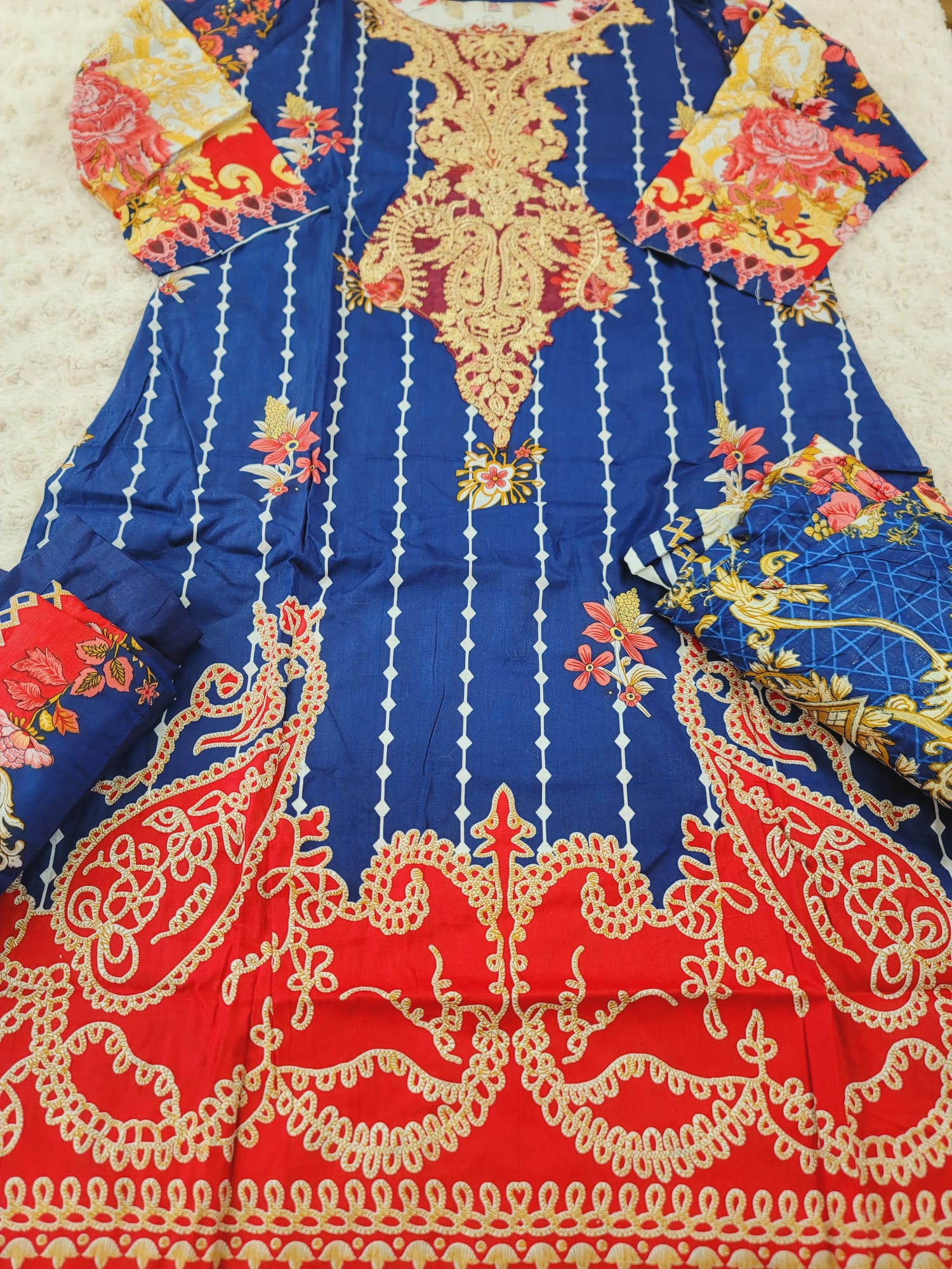 Indian Cotton Stitched Embroidery Suit Ready To Ship