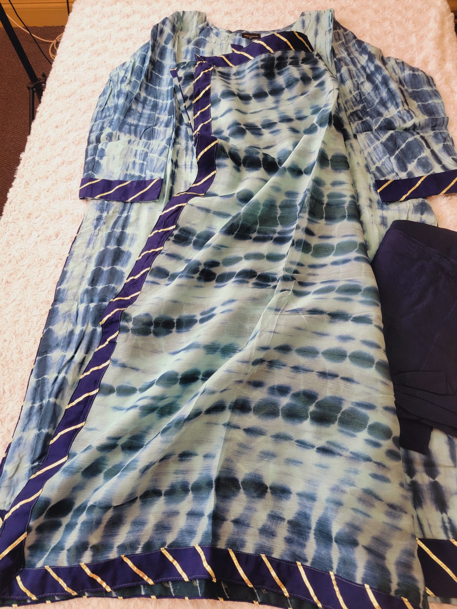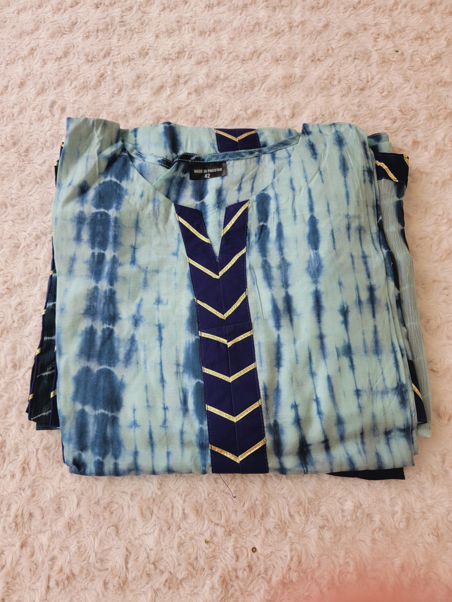 Pure silk tye dye designer salwer kamiz with pure chiffon dupatta - 42 is backordered and will ship as soon as it is back in stock.