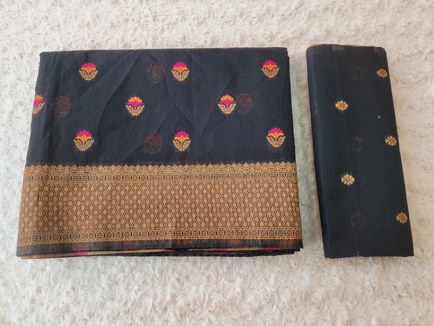 Pure tusser sillk with zari border and pallu is backordered and will ship as soon as it is back in stock.