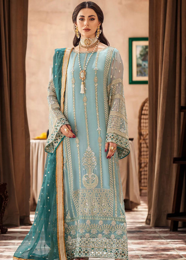 3 Piece Embroidered Chiffon Lawn Suit Color: Blue
