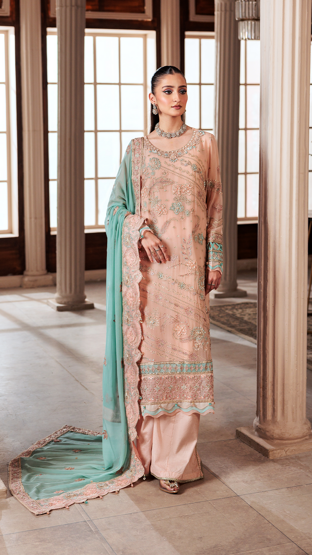 EMBROIDERED WEIGHTLESS CHIFFON FRONT WITH H.M WORK 1 YDS, PLAIN WEIGHTLESS