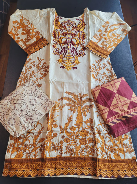 Pakistani Linen Chickenkari Embroidered Salwar kameez Ready To Ship