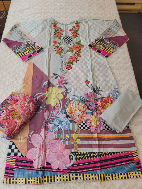 Pakistani Stitched lawn Embroidered Salwar kameez ready to ship