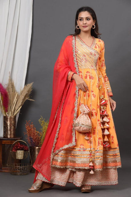 Premium Cotton Bandej Gown With Beautiful Embroidery On Yoke and Gota Detailing