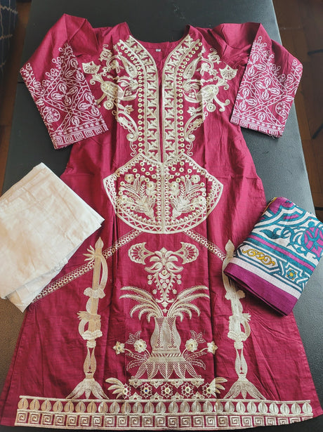 $3500Unit price /UnavailableIndian Cotton Stitched Embroidered Suit Ready To Ship