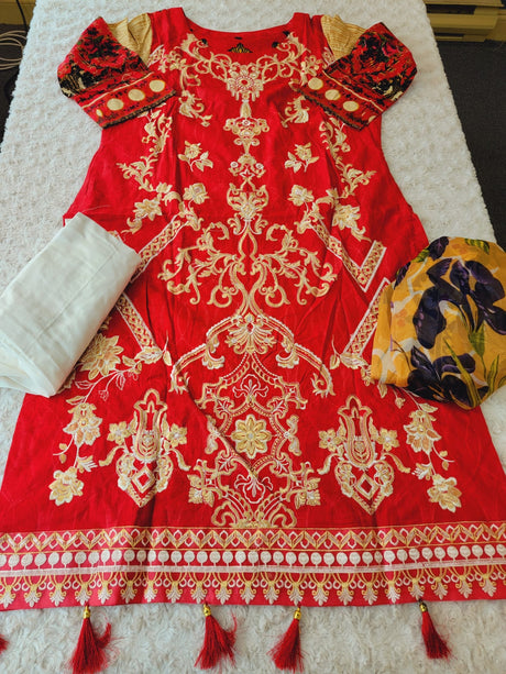 Indian Cotton Stitched Embroidery Suit Ready To Ship