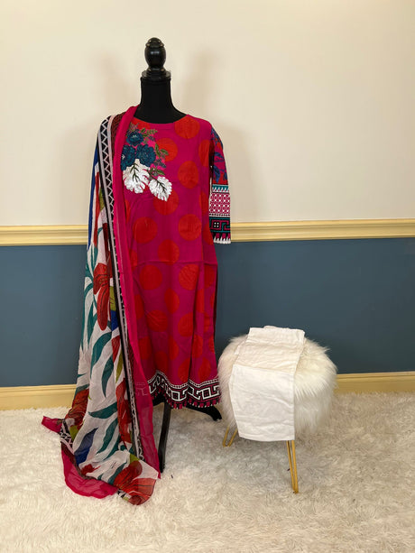 Indian Cotton Stitched Embroidery Suit Ready To Ship