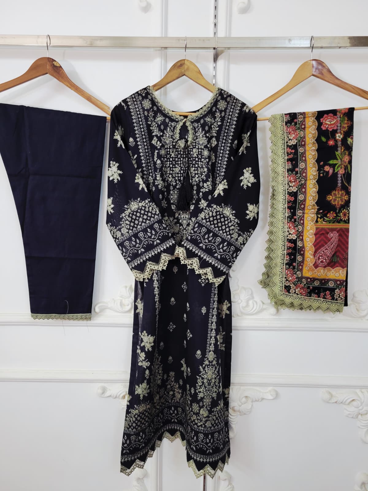 Full side Embroidered lace duppata