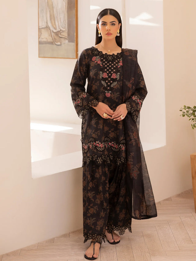 SILK LAWN PRINTED EMBROIDERED SHIRT WITH EMBROIDERED PATCH