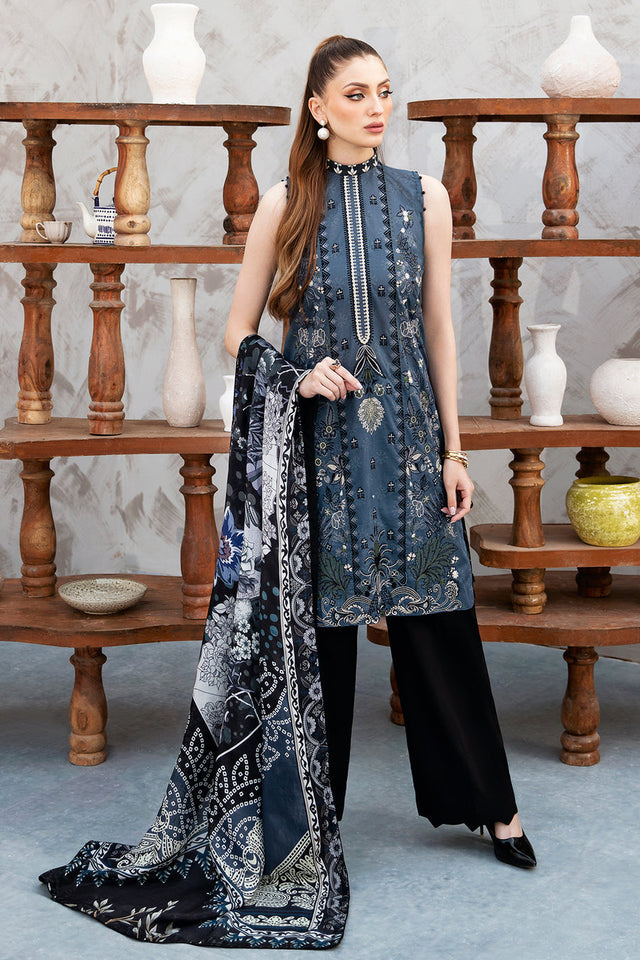 Digital printed embroidered lawn front