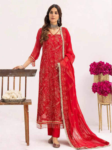Embroidered & Hand Work Premium Luxury Chiffon Dress