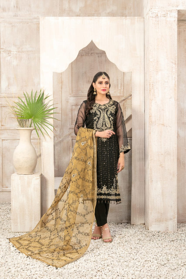 – Stitched Fancy Heavy Embroidered Organza Shirt Designs with Embellishments
